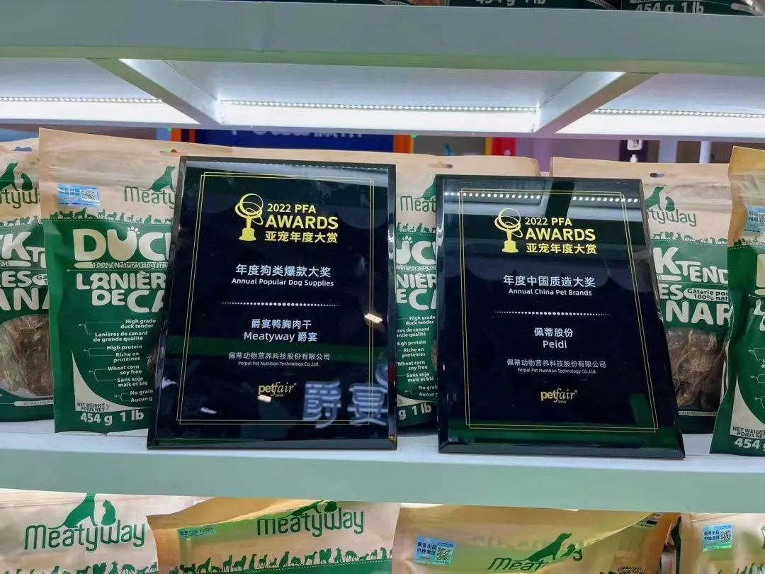 本次2022PFAAWARDS亞寵年度大賞共發(fā)布10大獎項榜單,其中佩蒂股份及旗下品牌上榜3大獎項:
