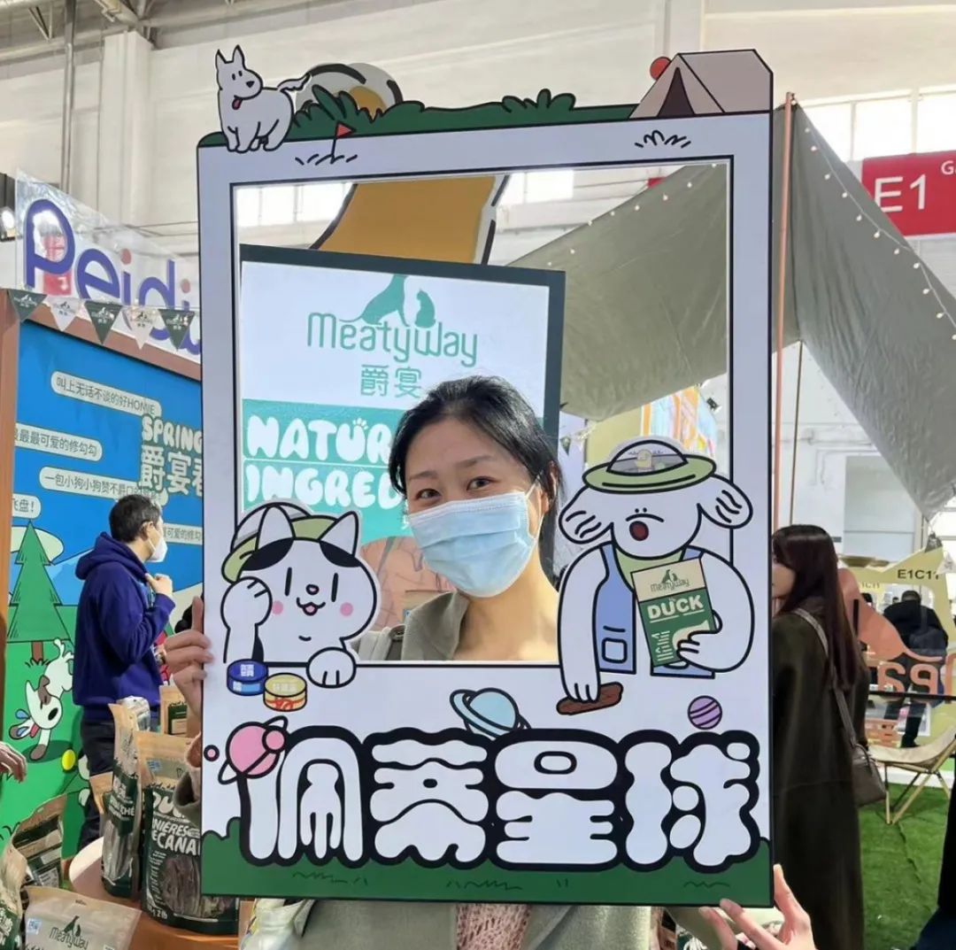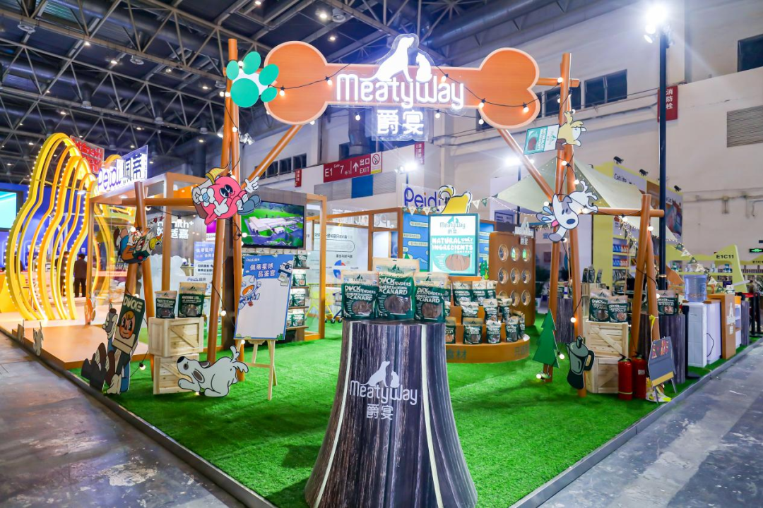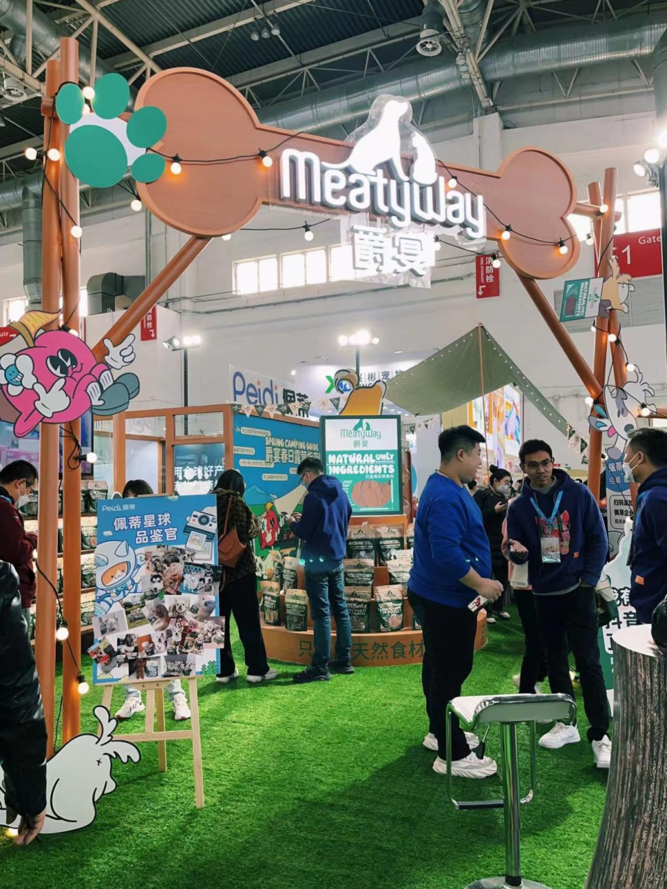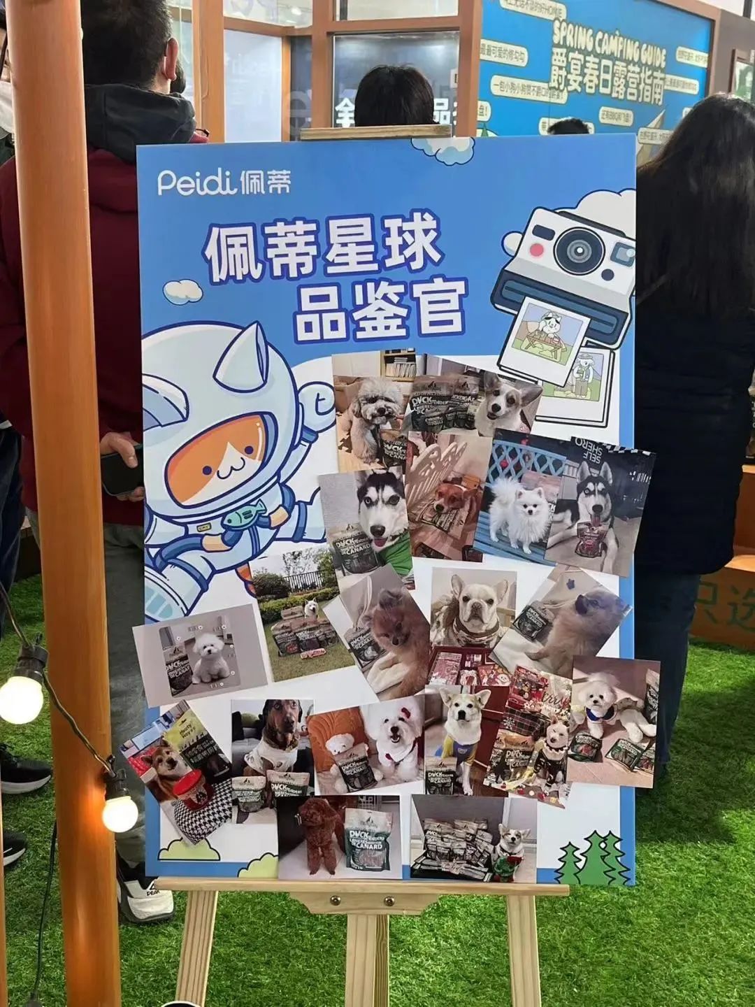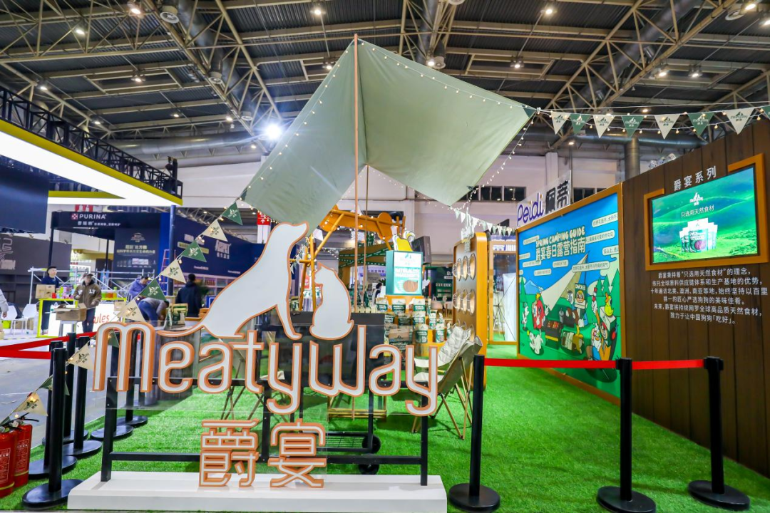 爵宴品牌展區(qū)鋪上清新柔軟的草坪,走上前去仿佛置身大自然。展臺采用原木設(shè)計風(fēng)格,還別出心裁地搭起了帳篷,為人們駐足停留設(shè)置了休憩區(qū),場館內(nèi)即刻感受原野露營、圍爐燒烤的戶外氛圍。這是首個將戶外露營風(fēng)格應(yīng)用在室內(nèi)搭建的寵物展臺,旨在callback【爵宴搖尾營地】品牌活動。該活動已在杭州成功舉辦兩屆,如今搬到京寵展現(xiàn)場,讓北京的朋友們開心過把癮!