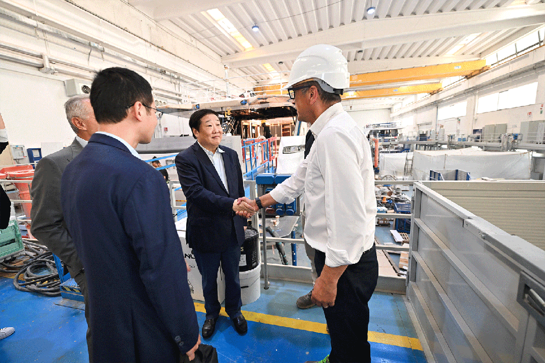 9月11日,譚旭光在意大利馬爾凱大區(qū)首府安科納市,調(diào)研濰柴集團(tuán)旗下法拉帝集團(tuán)超級(jí)游艇生產(chǎn)制造基地安科納工廠,詳細(xì)了解近幾年CRN、CUSTOM LINE游艇生產(chǎn)情況。
