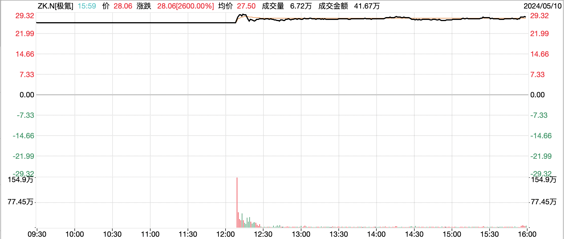 極氪上市首日開盤價為26美元/股,盤中曾一度漲超38%,截至收盤,極氪報收28.26美元/股,上漲34.57%,總市值68.98億美元。