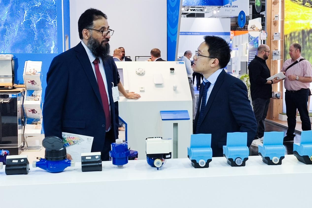 博覽會期間,水計量行業(yè)知名品牌紛紛亮相,寧水集團(tuán)作為中國水計量行業(yè)代表企業(yè),受到全球嘉賓的熱切關(guān)注。公司展陳的超聲系列產(chǎn)品、噪聲相關(guān)儀等備受關(guān)注,其中第三代超聲水表首次亮相歐洲展會,成為與會嘉賓關(guān)注的焦點(diǎn)。