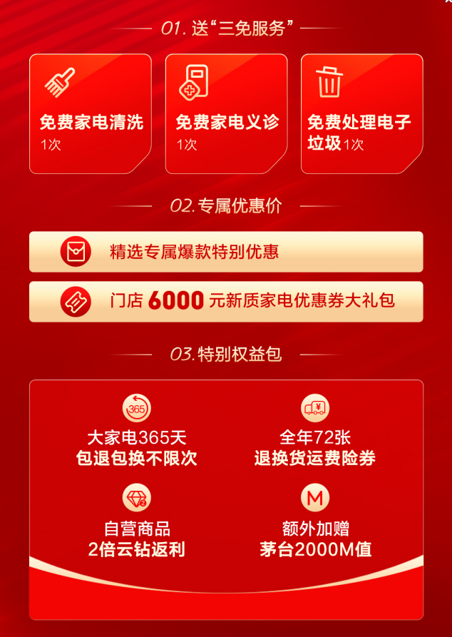 值得一提的是,此次活動(dòng)還將為股東會(huì)員送上四大特別權(quán)益,包括大家電365天包退包換不限次、全年72張退換貨運(yùn)費(fèi)險(xiǎn)券、自營商品2倍云鉆返利、大額茅臺(tái)M值等。用戶可通過蘇寧易購App或者小程序領(lǐng)取,特權(quán)自生效之日起為期一年。