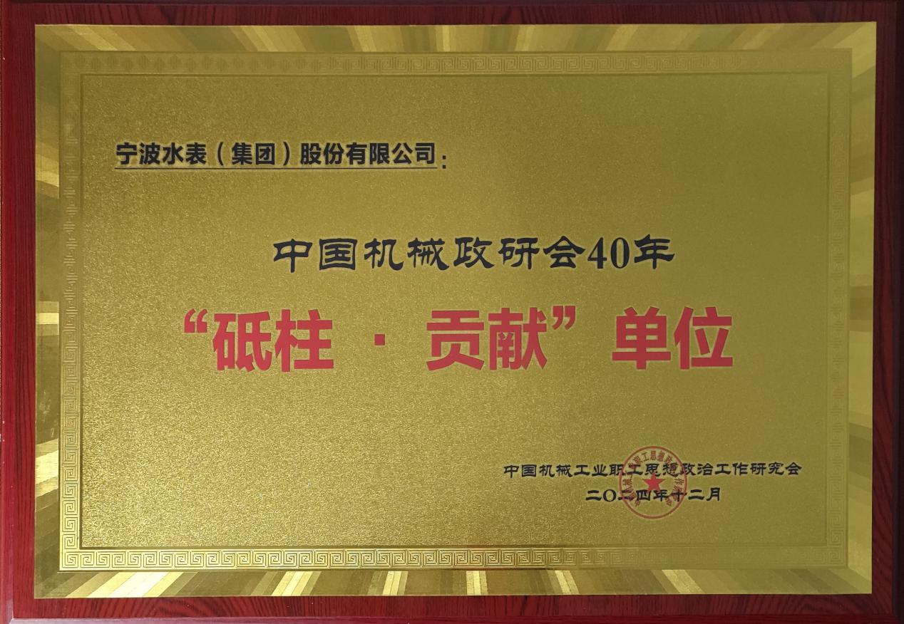 近日,2024裝備制造發(fā)展大會“機械工業(yè)精神助力機械工作高質(zhì)量發(fā)展”論壇在重慶隆重召開。為表彰先進,把榜樣的力量化為推動行業(yè)發(fā)展的動力,同期,中國機械政研會發(fā)布了40年“砥柱•貢獻”單位和“特別貢獻”榮譽、“奮斗•貢獻”榮譽個人名單,其中,寧波水表(集團)股份有限公司(股票簡稱:寧水集團 股票代碼:603700)獲評中國機械政研會40年“砥柱•貢獻”單位殊榮!