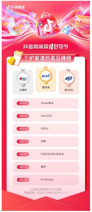 作為行業(yè)內(nèi)率先布局線上渠道的企業(yè)之一,藍(lán)月亮始終致力于渠道優(yōu)化的推進(jìn)。在鞏固傳統(tǒng)電商優(yōu)勢的基礎(chǔ)上,藍(lán)月亮高效布局新興電商平臺,持續(xù)保持線上領(lǐng)先地位。這一戰(zhàn)略部署的成效,在京東、抖音等平臺的“雙11”榜單中得到充分體現(xiàn)。