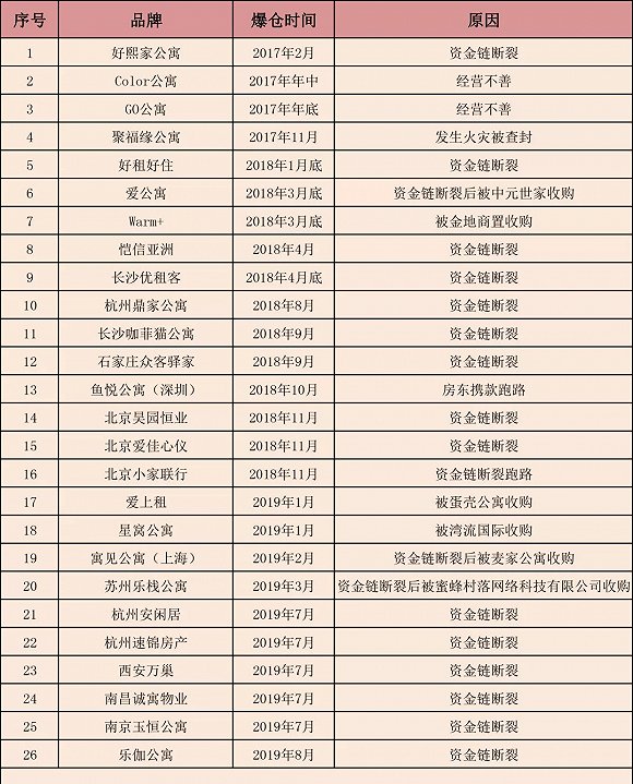 ▲網(wǎng)絡(luò)上公開的國內(nèi)已爆倉長租公寓品牌