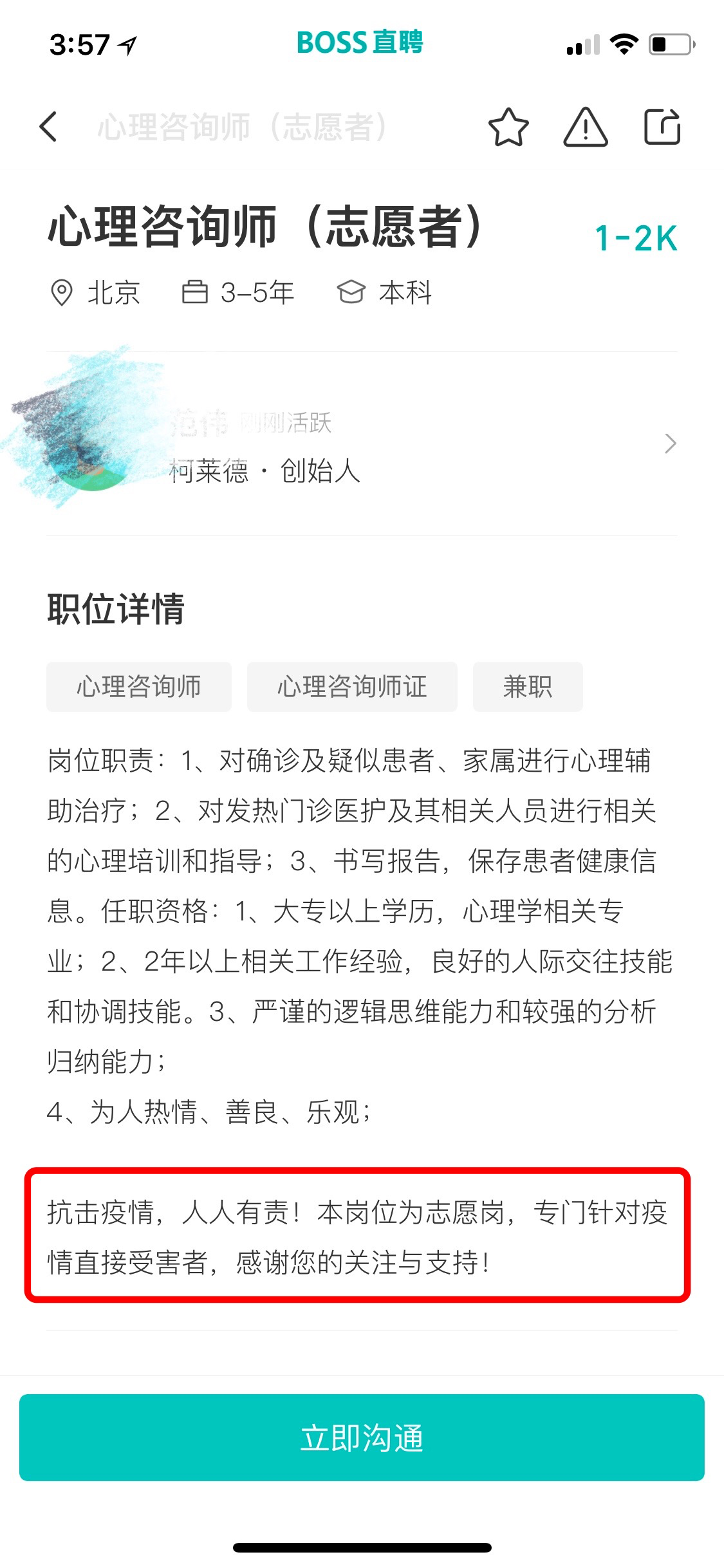 受到全球疫情反復影響,恐慌、焦慮、煩躁等心理問題頻發(fā),心理咨詢的需求量正在不斷增加。招聘平臺BOSS直聘顯示,京東、柯萊德等許多公司正在招聘大量全職或兼職心理咨詢師及心理咨詢志愿者,以應對人們出現(xiàn)的多種心理問題。