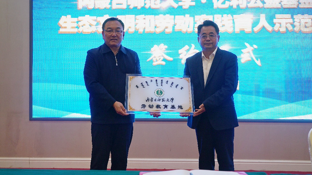 圖為內(nèi)蒙古師范大學(xué)與億利簽署《共建生態(tài)文明和勞動(dòng)實(shí)踐育人示范基地合作協(xié)議書》
