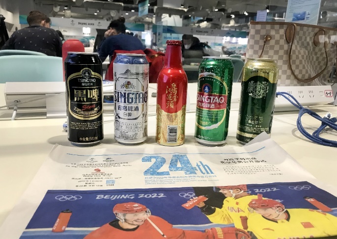 在北京冬奧會(huì)主媒體中心綜合商店,青島啤酒冬奧冰雪罐、鴻運(yùn)當(dāng)頭、奧古特、全麥白啤、黑啤等5款產(chǎn)品亮相,占據(jù)了店內(nèi)的一整面貨柜,工作人員表示,不少國(guó)際友人會(huì)選擇青島啤酒作為賽間休息或慶功用酒。