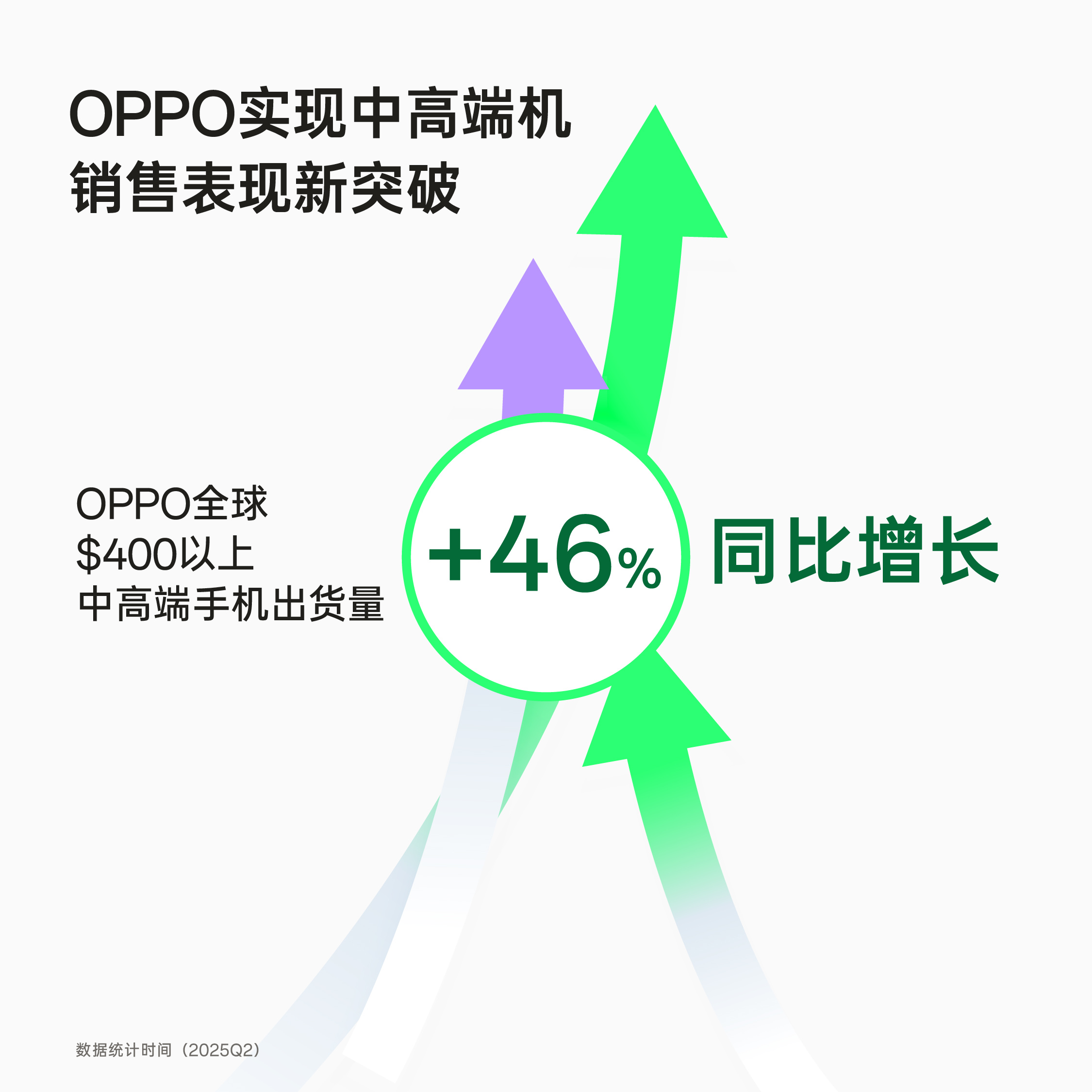 IDC此前發(fā)布的報告顯示,OPPO400美元以上中?端機(jī)型出貨量的增速亮眼:從2024年Q2的270萬臺增長?2025年Q2的400萬臺,同?增長46.6%。
