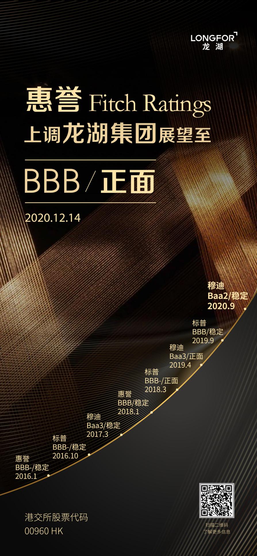 12月14日,龍湖集團控股有限公司(港交所股份代號:960)宣布,國際權威信用評級機構(gòu)惠譽(Fitch)已將龍湖展望調(diào)升至正面,發(fā)行人和高級無擔保債券評級維持BBB。龍湖亦成為2020年至今中國全投資級房企中唯一一家獲兩家國際機構(gòu)調(diào)升評級/展望的企業(yè)。