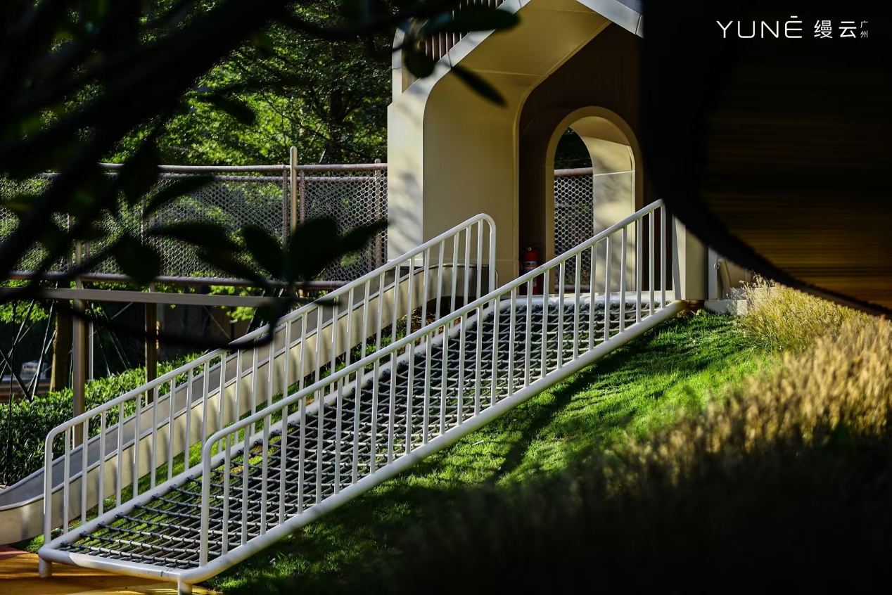縵品牌研創(chuàng)的“折疊園林”體系,把對各年齡段的貼心關(guān)懷從室內(nèi)延伸至戶外。在縵云廣州1.6萬m²中心園林景觀中,深度考量全齡段需求,將外部半山景觀與臺地園林的自然融合,多樣化的功能融入園林內(nèi)部?!感请H云廊」,將各個組團巧妙串聯(lián),延伸每一位業(yè)主的深度需求,無障礙的坡道設(shè)計讓活動的空間無限放大。