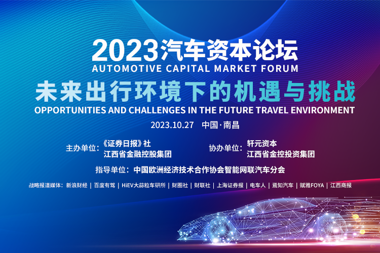 由《證券日報》社與江西省金融控股集團(tuán)主辦、江西省金控投資集團(tuán)與上海軒元私募基金管理有限公司協(xié)辦的"2023汽車資本論壇--未來出行環(huán)境下的機(jī)遇與挑戰(zhàn)"將于2023年10月27日在江西南昌舉辦...[詳細(xì)]
