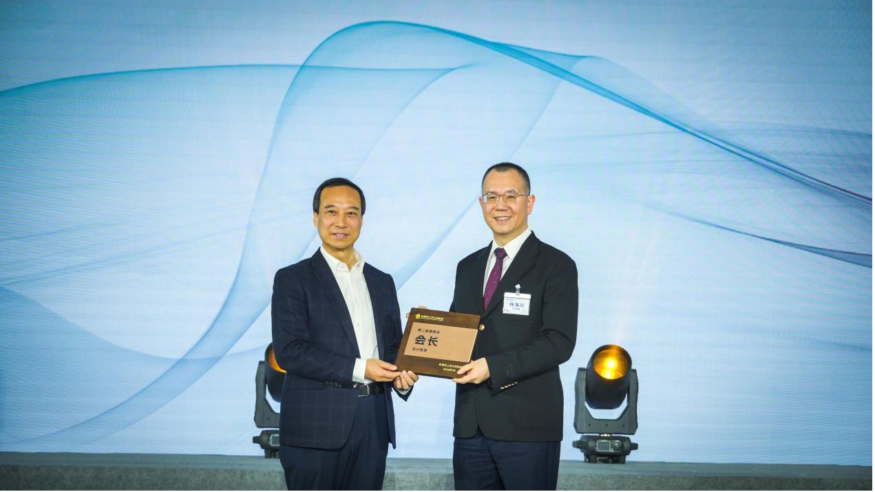 東莞市委副書記、市長呂成蹊為新任會長林海川頒發(fā)牌匾 協(xié)會供圖