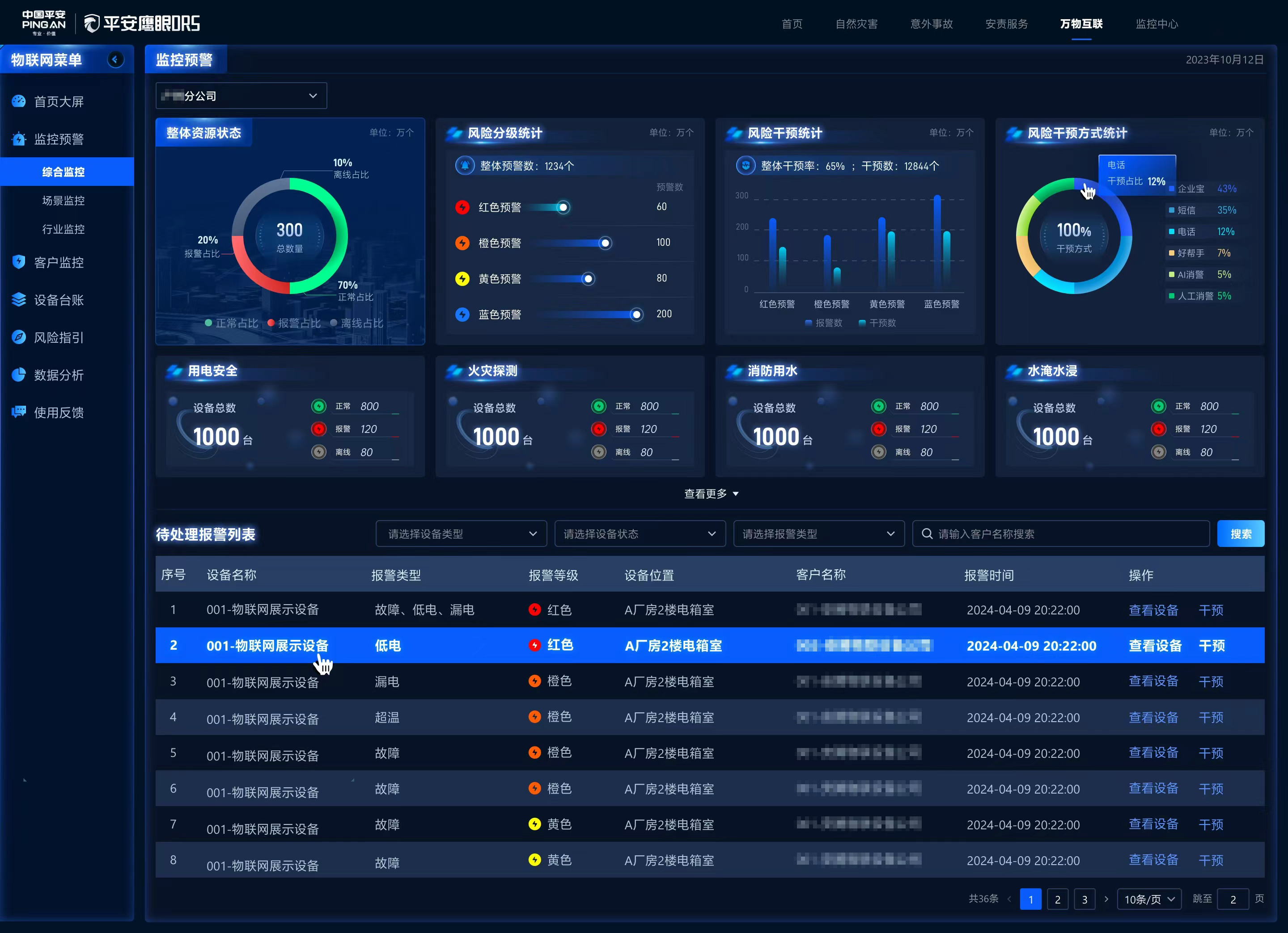平安產(chǎn)險(xiǎn)團(tuán)體財(cái)意健險(xiǎn)部副總經(jīng)理景明洲介紹,在自然災(zāi)害風(fēng)險(xiǎn)管理方面,鷹眼系統(tǒng)3.0可識別地震、臺風(fēng)、暴雨等24種自然災(zāi)害風(fēng)險(xiǎn),并借助專業(yè)風(fēng)控工程師隊(duì)伍深入一線進(jìn)行風(fēng)險(xiǎn)干預(yù),從源頭消除潛在風(fēng)險(xiǎn)。2025年6月份,臺風(fēng)“蝴蝶”在海南登陸,平安產(chǎn)險(xiǎn)依托鷹眼系統(tǒng),通過平安好車主、企業(yè)寶、平安愛農(nóng)寶等平臺及短信、微信等渠道,在災(zāi)前推送災(zāi)害預(yù)警信息超570萬次,覆蓋車險(xiǎn)、農(nóng)險(xiǎn)、財(cái)產(chǎn)險(xiǎn)等客戶超310萬;線下回訪374家企業(yè),發(fā)放防災(zāi)物資5781套,有效助力客戶防災(zāi)減損。在意外事故風(fēng)險(xiǎn)管理方面,鷹眼系統(tǒng)打造了萬物互聯(lián)板塊,通過網(wǎng)絡(luò)連接物聯(lián)網(wǎng)安防設(shè)備,能夠?yàn)榭蛻羝髽I(yè)提供7X24小時(shí)的風(fēng)險(xiǎn)實(shí)時(shí)監(jiān)控、預(yù)警及風(fēng)險(xiǎn)隱患干預(yù)。2025年,在廣東深圳,平安產(chǎn)險(xiǎn)通過為超3000家餐飲企業(yè)部署燃?xì)鈧鞲衅骱碗姶砰y設(shè)備,實(shí)現(xiàn)7X24小時(shí)實(shí)時(shí)監(jiān)測并干預(yù)燃?xì)庑孤╋L(fēng)險(xiǎn),切實(shí)為小微企業(yè)保駕護(hù)航。此外,在農(nóng)業(yè)減災(zāi)方面,鷹眼系統(tǒng)打造農(nóng)災(zāi)預(yù)測、災(zāi)情分析、區(qū)間估損三大核心工具,用于快速理賠和快速救災(zāi),2025年上半年幫助各省災(zāi)情減損2000萬元,應(yīng)災(zāi)時(shí)效提高25%。