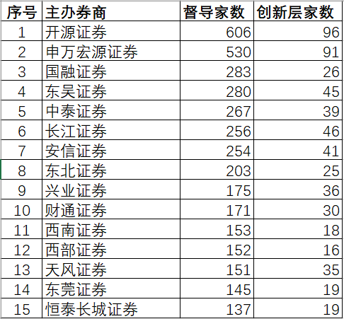 根據(jù)東方財(cái)富choice數(shù)據(jù)統(tǒng)計(jì),截至2021年10月8日,開源證券持續(xù)督導(dǎo)的新三板掛牌企業(yè)家數(shù)達(dá)到606家,排名全市場(chǎng)第一位。