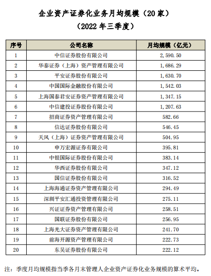 三季度,企業(yè)資產(chǎn)證券化業(yè)務(wù)月均規(guī)模方面,中信證券以2590.5億元的月均規(guī)模位居第一;華泰證券資管、平安證券、中金公司緊隨其后,月均規(guī)模均超1500億元。