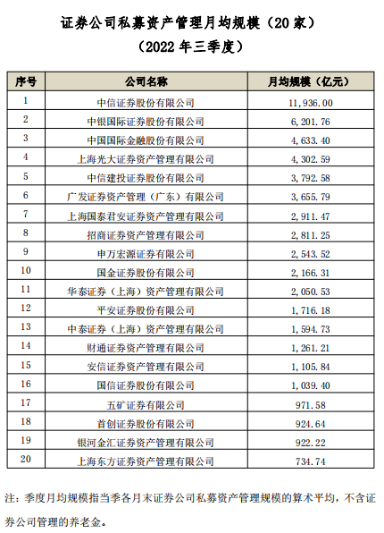 11月14日晚間,中國(guó)證券投資基金業(yè)協(xié)會(huì)發(fā)布三季度證券公司私募資產(chǎn)管理月均規(guī)模數(shù)據(jù),據(jù)《證券日?qǐng)?bào)》記者梳理,前20強(qiáng)月均規(guī)模合計(jì)為5.73萬(wàn)億元,環(huán)比增長(zhǎng)1.21%。