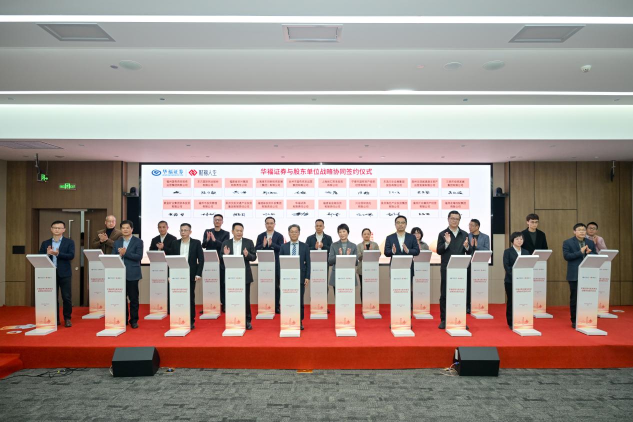 2024年12月16日,華福證券與股東單位戰(zhàn)略協(xié)同簽約儀式在公司福州總部舉行。福建省委金融辦、福建省財政廳、福建證監(jiān)局等相關(guān)部門和福建金投、興業(yè)銀行等集團單位有關(guān)領(lǐng)導(dǎo)出席活動并見證簽約。會上,華福證券與全體19家股東單位進行戰(zhàn)略協(xié)同簽約,標志著公司圓滿完成增資擴股,攜手股東單位全面開啟深化合作、協(xié)同發(fā)展的嶄新篇章。