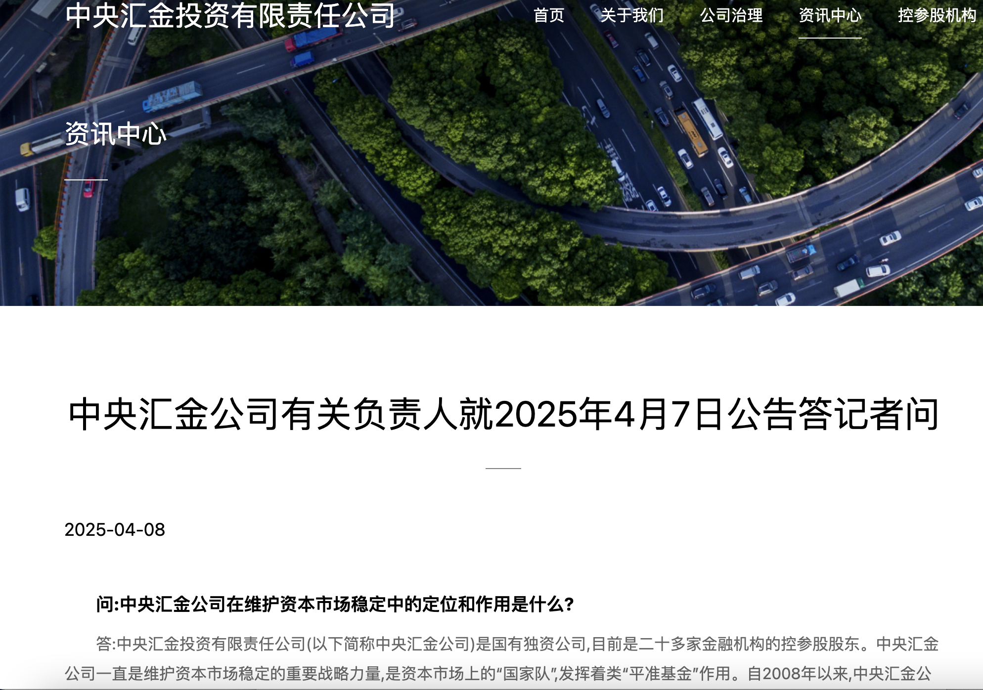 中央?yún)R金公司有關負責人就2025年4月7日公告答記者問