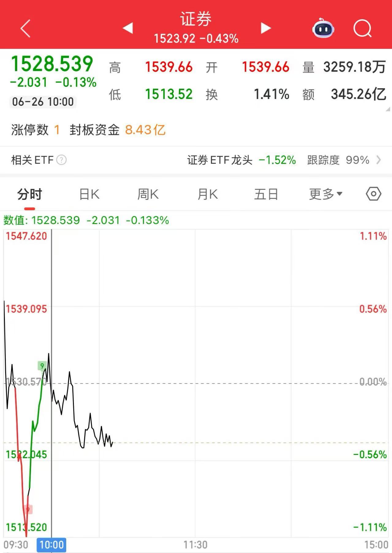 近日,素有“牛市旗手”之稱的證券板塊異動(dòng)頻繁,走勢成為市場焦點(diǎn)。6月26日,A股證券板塊波動(dòng)加劇,早盤開盤后,板塊指數(shù)一度快速下探,但隨后在資金集中涌入下強(qiáng)勢拉升,僅30分鐘成交額便突破340億元,交投活躍度顯著提升。
