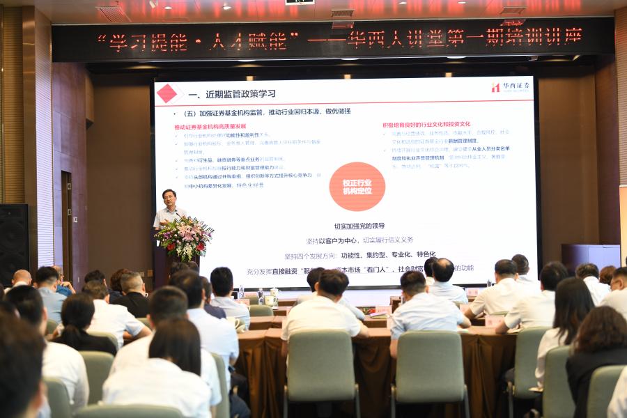 公司已陸續(xù)開辦了6期面向全體員工的華西大講堂系列講座,內(nèi)容涉及宏觀經(jīng)濟、監(jiān)管政策解讀、行業(yè)文化、前沿產(chǎn)業(yè)分析、公司戰(zhàn)略宣講等。助力員工理解行業(yè)文化、洞悉市場動態(tài)、捕捉經(jīng)濟脈搏,探索業(yè)務(wù)發(fā)展機遇,為公司業(yè)務(wù)轉(zhuǎn)型與創(chuàng)新發(fā)展注入新的思維動力。