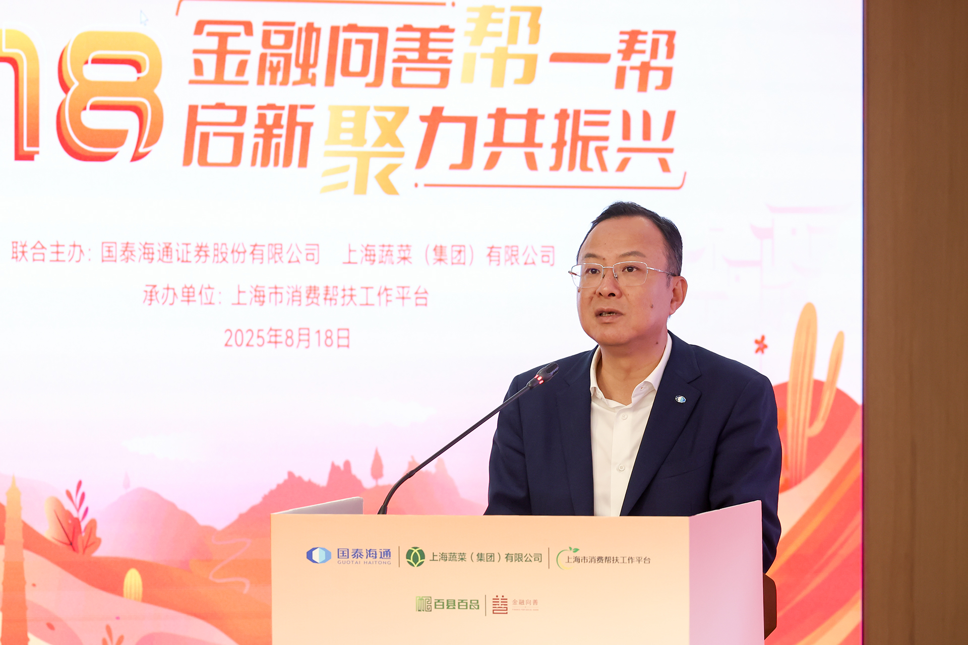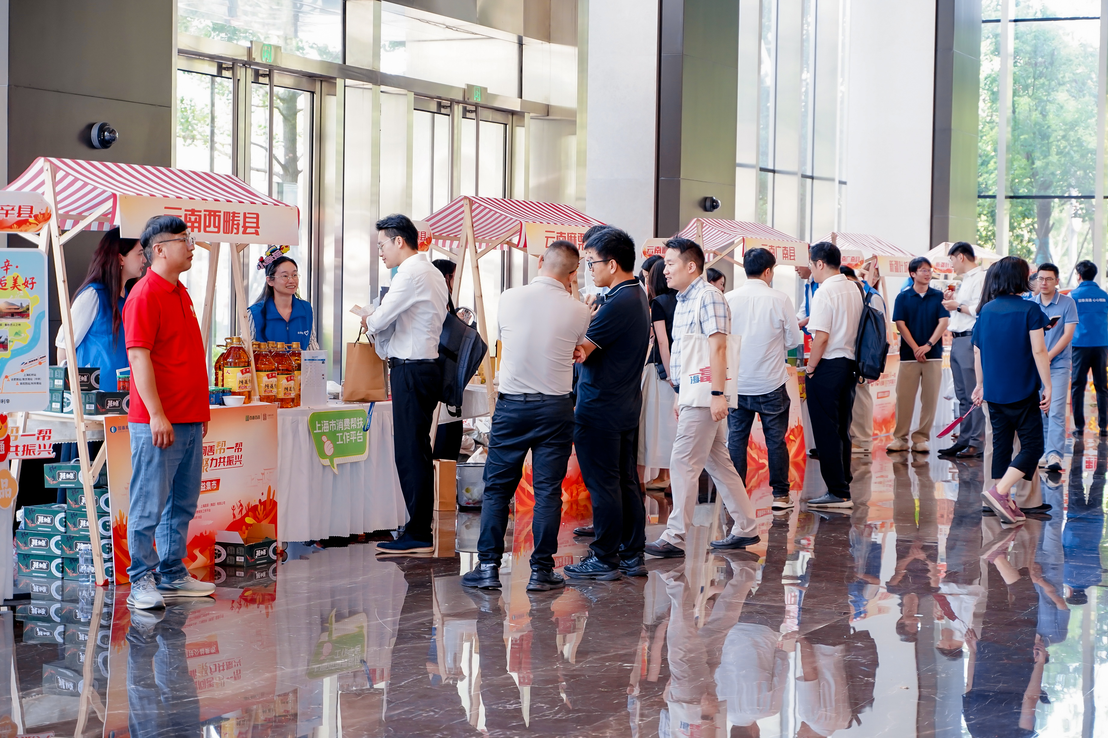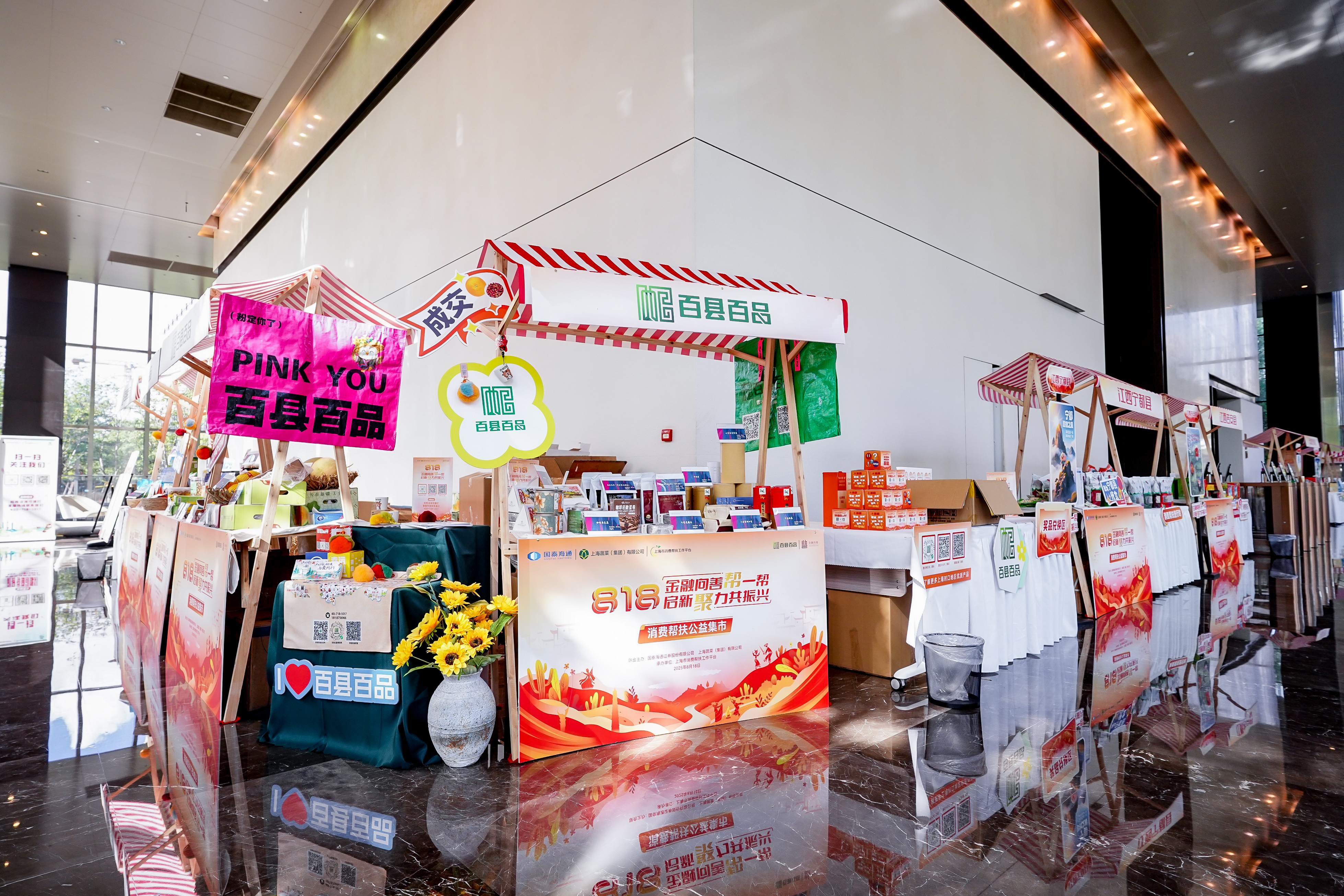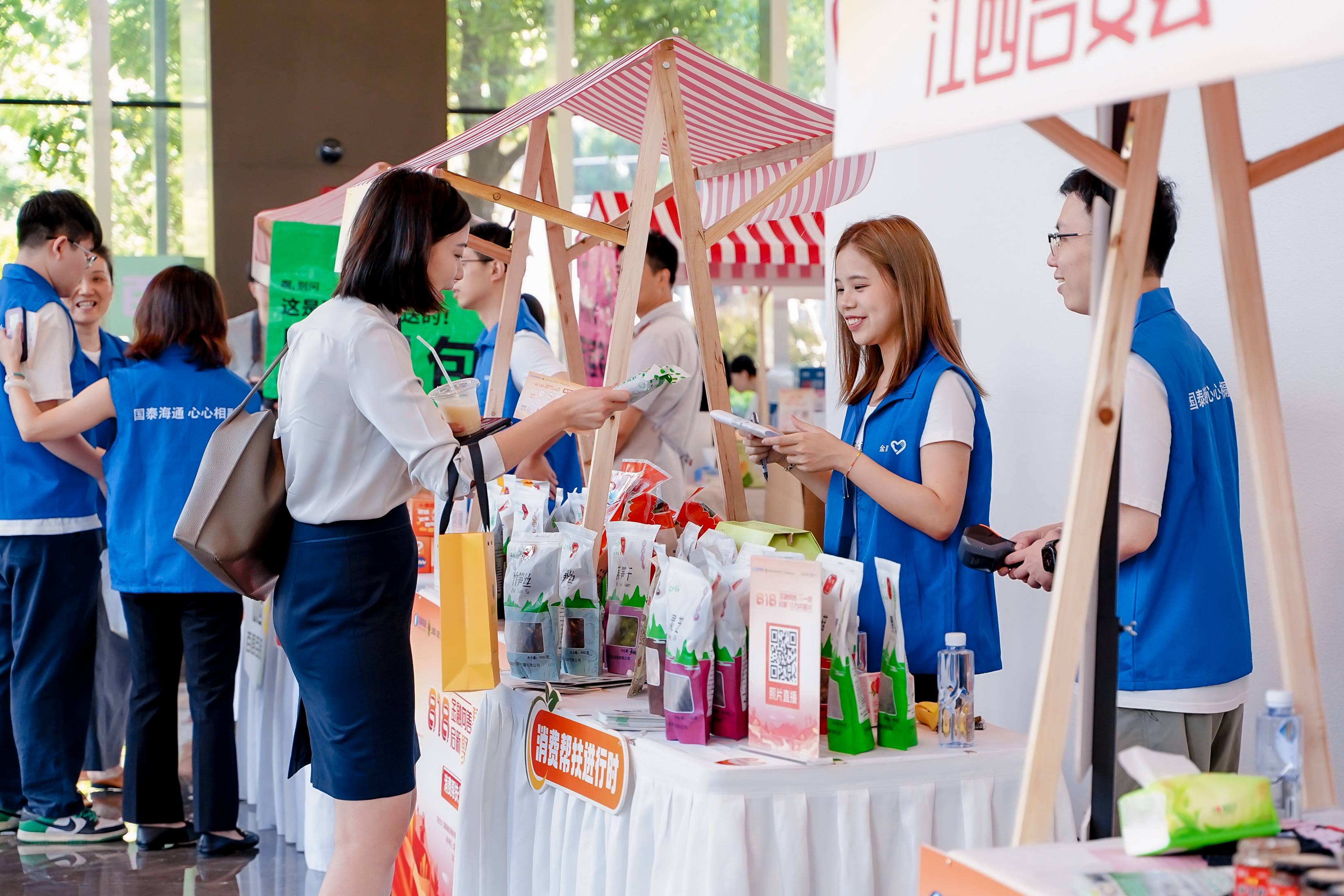 為進一步做好“一司一縣”結(jié)對幫扶、“百企結(jié)百村”工作,強化幫扶實效,助力鄉(xiāng)村全面振興,8月18日,國泰海通攜手戰(zhàn)略客戶光明集團下屬上海蔬菜集團(上海市消費幫扶工作平臺)舉辦首屆“818·幫一幫”公益文化節(jié)暨消費幫扶公益集市。公司黨委書記、董事長朱健,黨委副書記、工會主席吳紅偉出席活動,上海市慈善基金會、上海市合作交流辦、上海市國資委、上海市民政局和來自安徽利辛、安徽潛山、安徽舒城、江西吉安、江西寧都、四川普格、新疆葉城、云南廣南、云南麻栗坡、云南西疇10個結(jié)對幫扶縣相關(guān)領(lǐng)導,以及上海證券交易所、浙江大學、東方航空、浦發(fā)銀行等公益伙伴代表參加活動,公司各部門、子公司相關(guān)負責人和志愿者等130余人參加主會場活動,線上線下600余名員工參加公益集市活動。