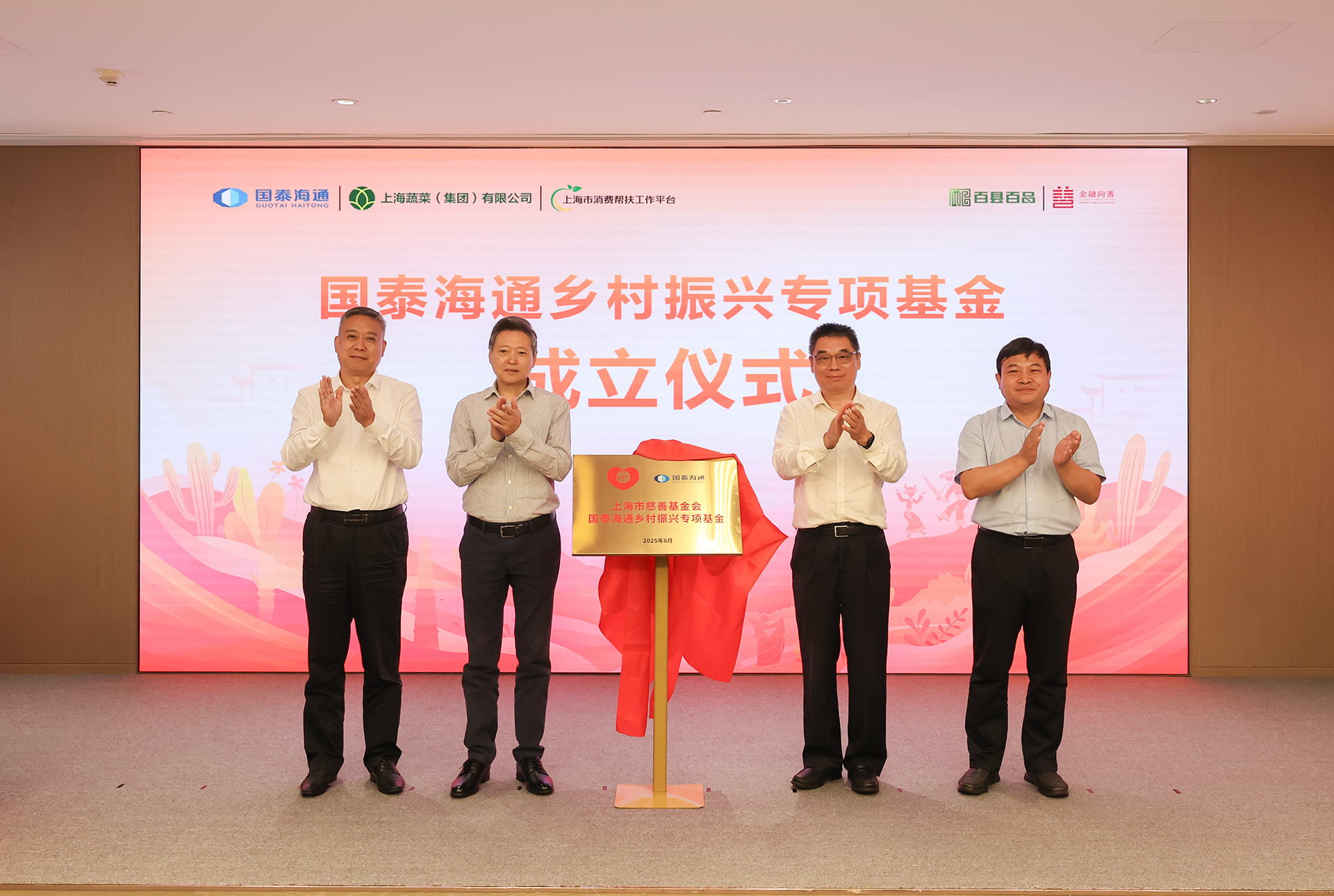 為了進一步做好產(chǎn)業(yè)幫扶,公司在上海市慈善基金會設(shè)立“國泰海通鄉(xiāng)村振興專項基金”,首期規(guī)模1000萬元。上海市慈善基金會副理事長丁斐平和吳紅偉共同為“國泰海通鄉(xiāng)村振興專項基金”揭牌,為結(jié)對縣發(fā)展有潛力的特色產(chǎn)業(yè)提供助力、注入動能。