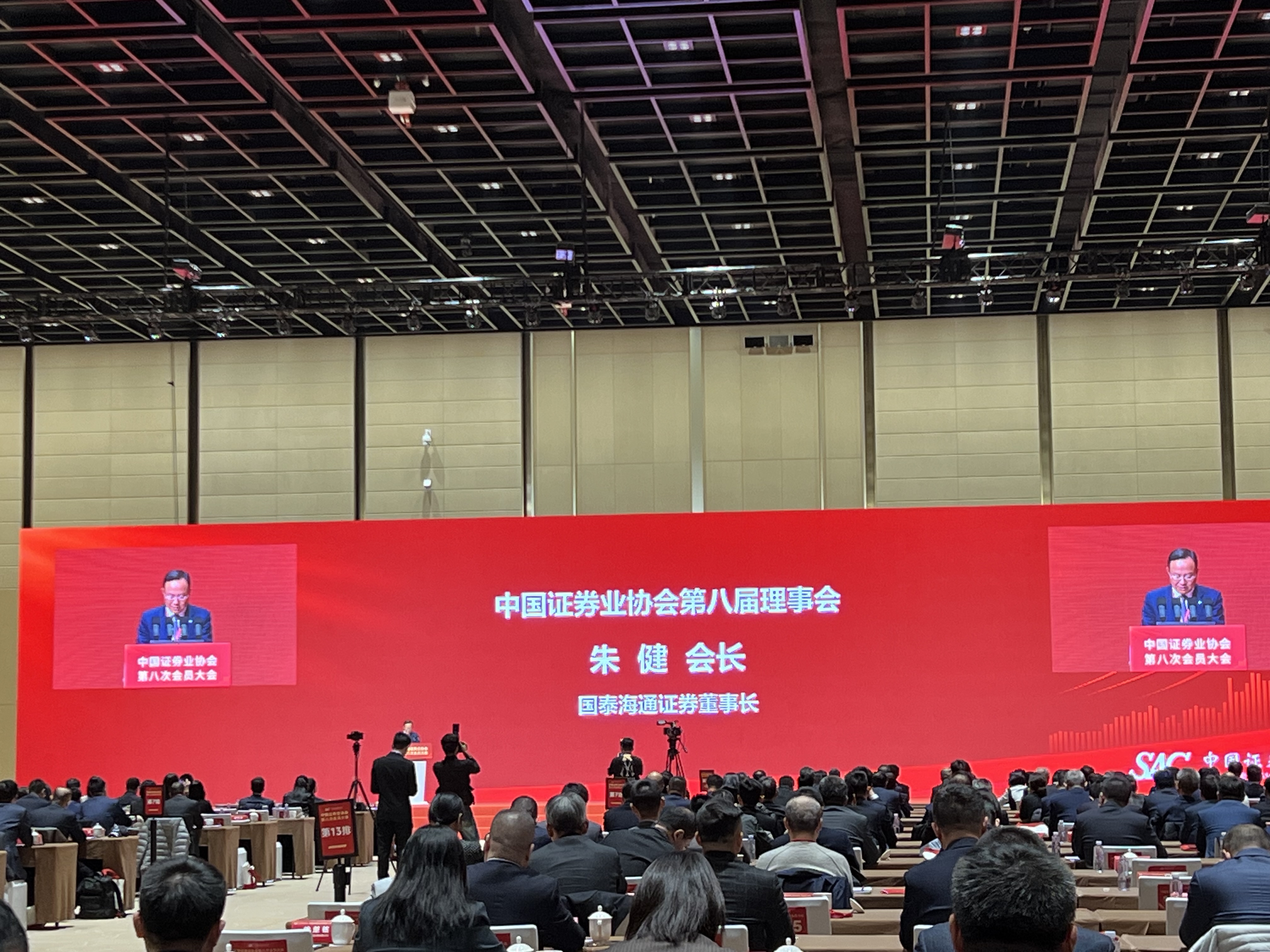 12月6日,在中國(guó)證券業(yè)協(xié)會(huì)第八次會(huì)員大會(huì)上,選舉產(chǎn)生了會(huì)?、專職副會(huì)?、兼職副會(huì)?。其中,常務(wù)理事、會(huì)長(zhǎng)為國(guó)泰海通證券董事長(zhǎng)朱健。其余9位兼職副會(huì)長(zhǎng)中有8位在證券公司任職,分別為中信建投證券劉成、申萬宏源證券劉健、中信證券鄒迎光、國(guó)信證券張納沙、中金公司陳亮、廣發(fā)證券林傳輝、華泰證券周易、招商證券霍達(dá)。