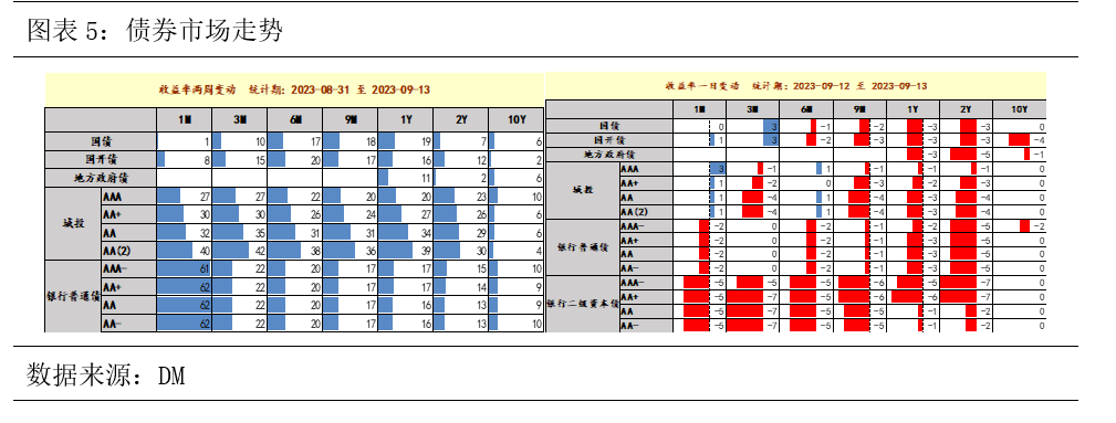 9月份上半月,受到權(quán)益政策和地產(chǎn)政策的影響,債券市場有所調(diào)整,收益率有所上升,但近兩天債券市場恢復(fù)火熱,且近期城投債二級市場保持上漲趨勢,股債蹺蹺板對二級影響較小。其中,江蘇、山東、湖北、天津等地的好轉(zhuǎn)較為關(guān)注,這些地區(qū)存在一定投資標(biāo)的,二級的穩(wěn)定反映投資者對這些地方的信心仍較好,后續(xù)預(yù)期仍保持較好的狀態(tài)。此外,關(guān)注重慶、云南、四川的轉(zhuǎn)好,尤其是近期特殊融資券等化債方案存在落地的可能,關(guān)注這些地區(qū)的投資機(jī)會(huì)。