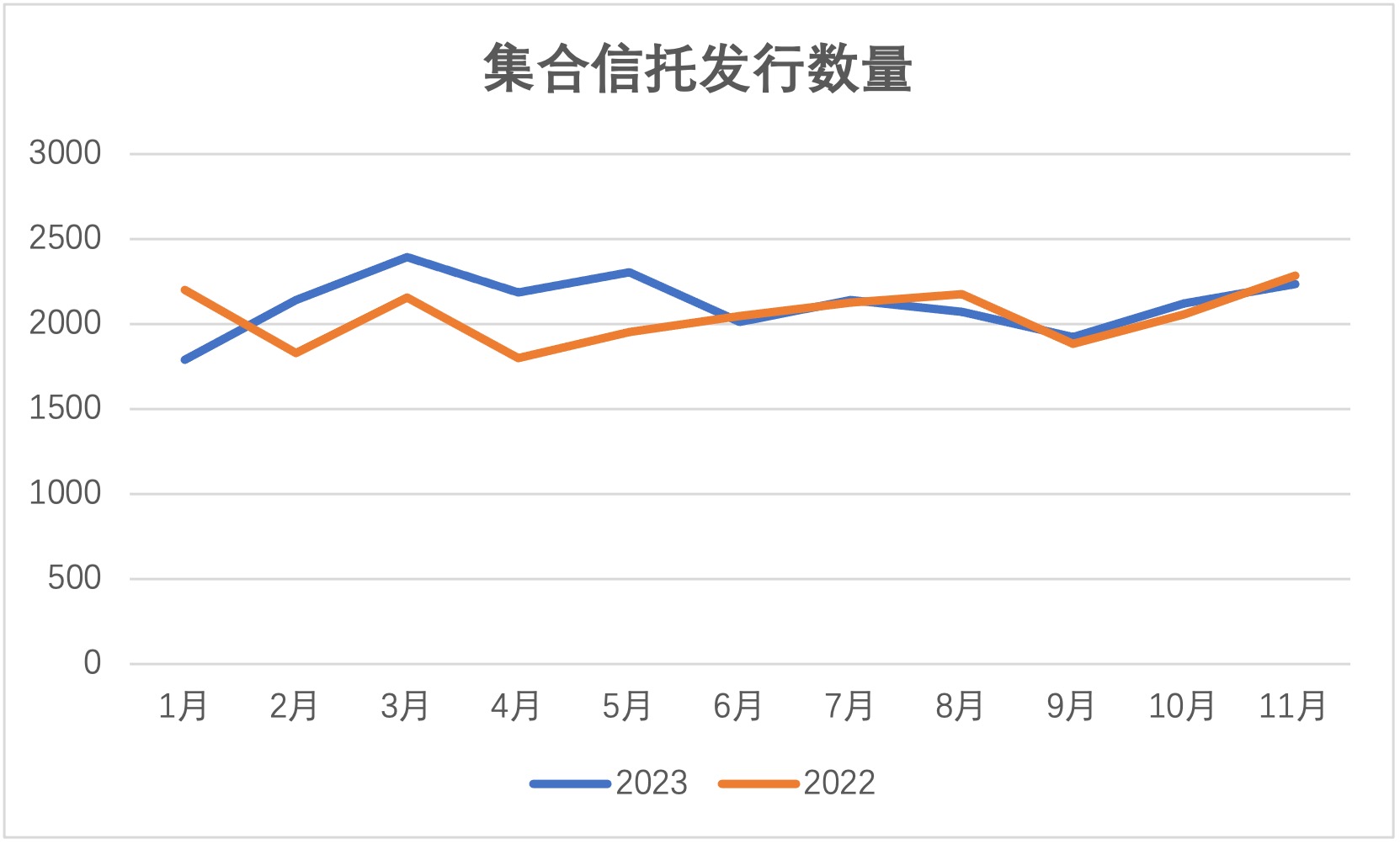 年內(nèi)數(shù)據(jù)來看,2023年上半年,集合信托產(chǎn)品發(fā)行數(shù)量整體高于去年同期,6月份以來,各月份集合信托產(chǎn)品發(fā)行數(shù)量較去年同比基本持平。整體來看,2023年集合信托產(chǎn)品發(fā)行數(shù)量整體呈現(xiàn)穩(wěn)中有升的態(tài)勢(shì)。