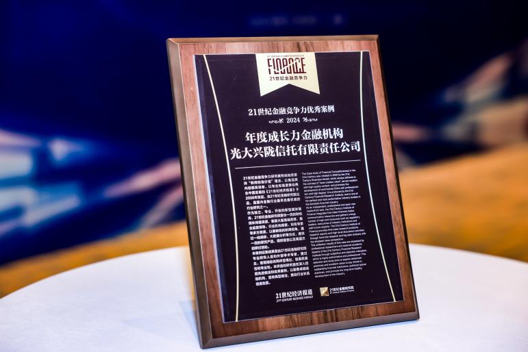為表彰卓越金融機構(gòu),推動行業(yè)健康發(fā)展,挖掘金融機構(gòu)年度優(yōu)秀樣本案例,11月9日,由《21世紀經(jīng)濟報道》主辦的“第十九屆21世紀金融年會暨2024年21世紀金融競爭力優(yōu)秀案例評選活動”在北京舉行,光大興隴信托憑借自身優(yōu)秀的業(yè)務(wù)創(chuàng)新轉(zhuǎn)型能力,入選“2024年21世紀金融競爭力優(yōu)秀案例”并榮獲“2024年度成長力金融機構(gòu)”獎項。