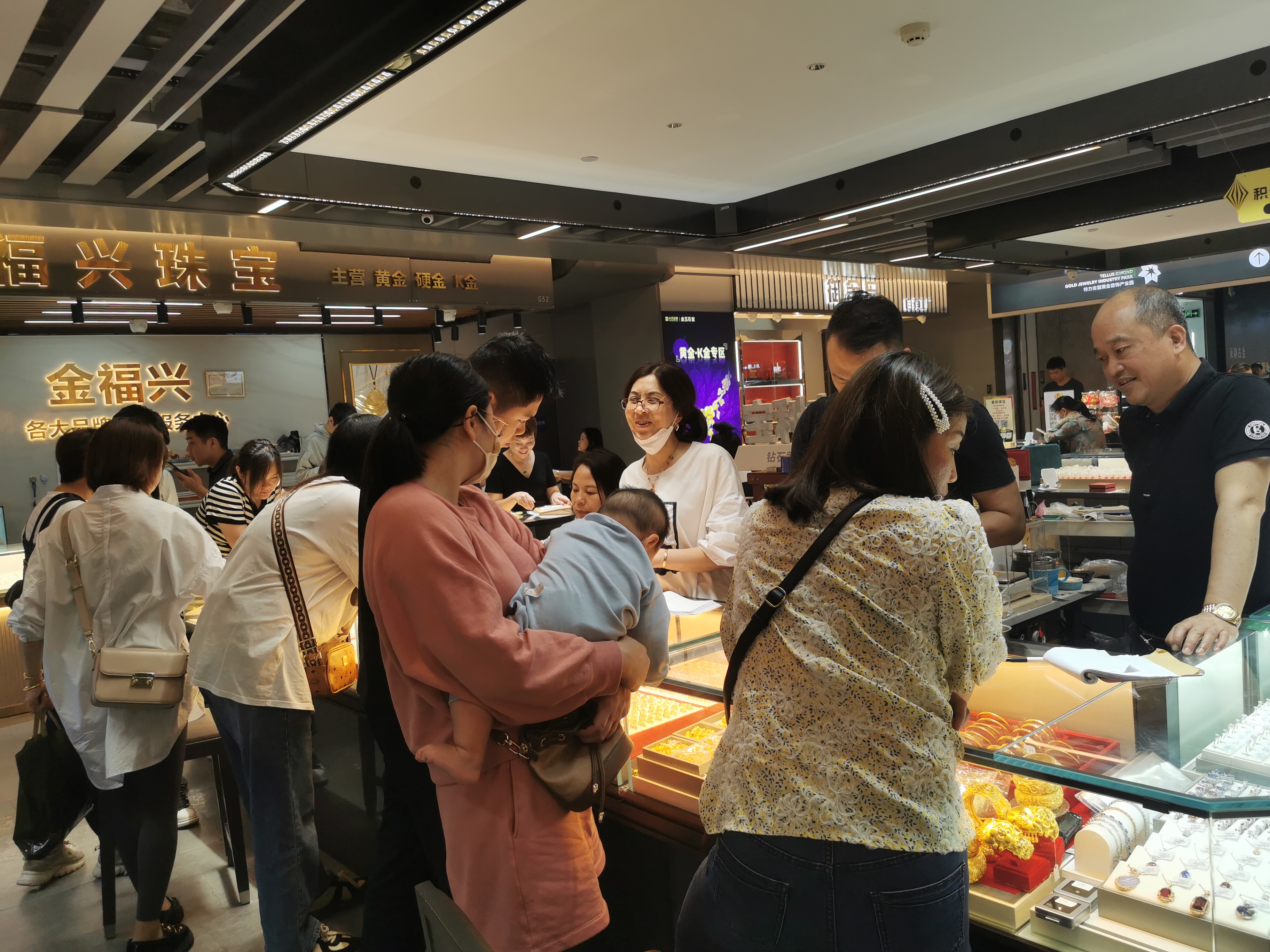 “我們接到的客戶訂單都直接送到工廠去加工,因此火熱的不僅是市場,各家工廠也是熱火朝天,從今年春節(jié)到現(xiàn)在,很多工廠的生產(chǎn)線都加班加點連軸轉(zhuǎn)。”水貝金座一柜臺老板古雪表示。