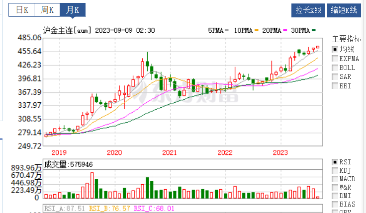 滬金主力合約走出一輪震蕩向上行情 東方財富/供圖