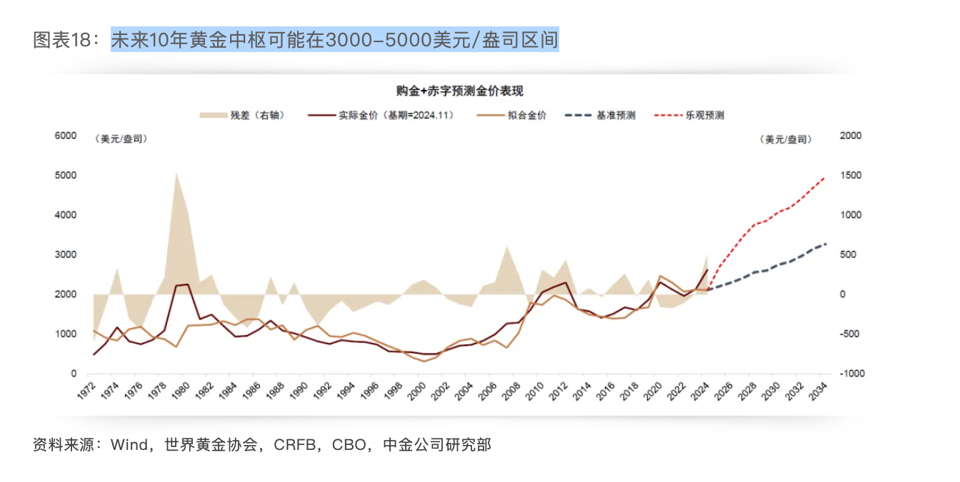 不過長期來看,業(yè)內(nèi)人士仍看好金價走勢,并認(rèn)為金價或?qū)⒊掷m(xù)維持高位。中金公司研究部更是預(yù)測,未來10年黃金中樞可能在3000美元/盎司至5000美元/盎司區(qū)間。