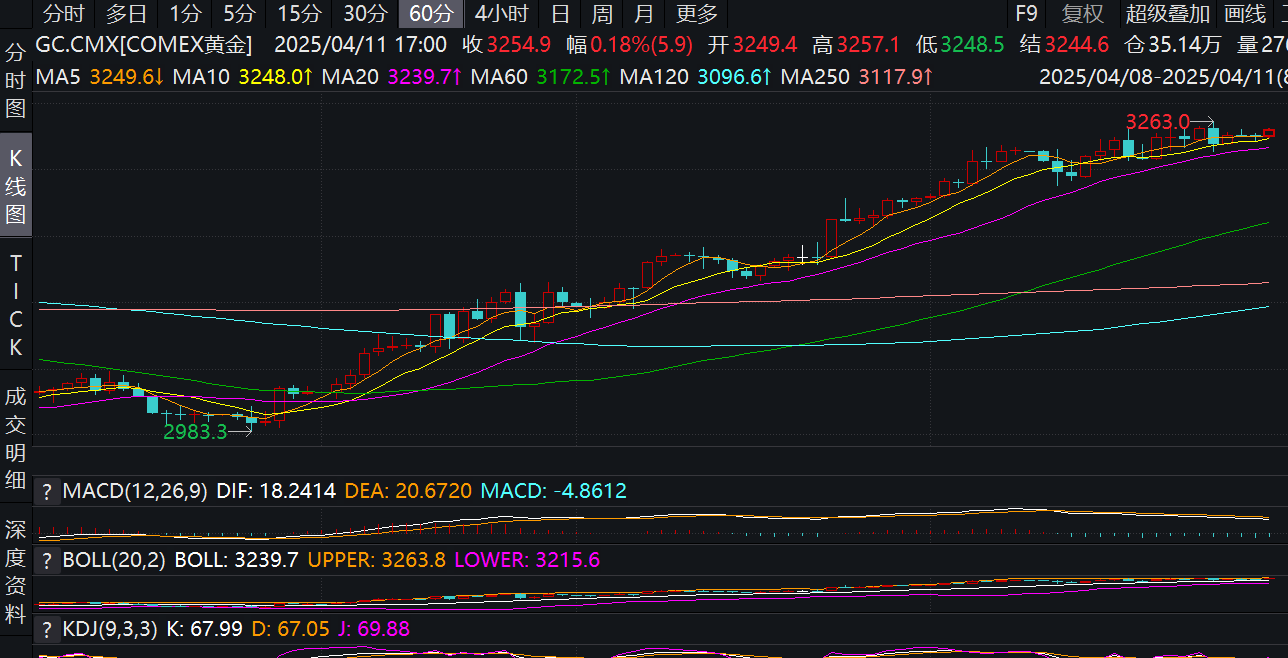 北京時(shí)間4月13日,紐約商業(yè)交易所(COMEX)黃金期貨再度創(chuàng)出歷史新高,主力6月合約盤中最高點(diǎn)達(dá)3263美元/盎司。截至記者發(fā)稿,該合約報(bào)收于3255美元/盎司。