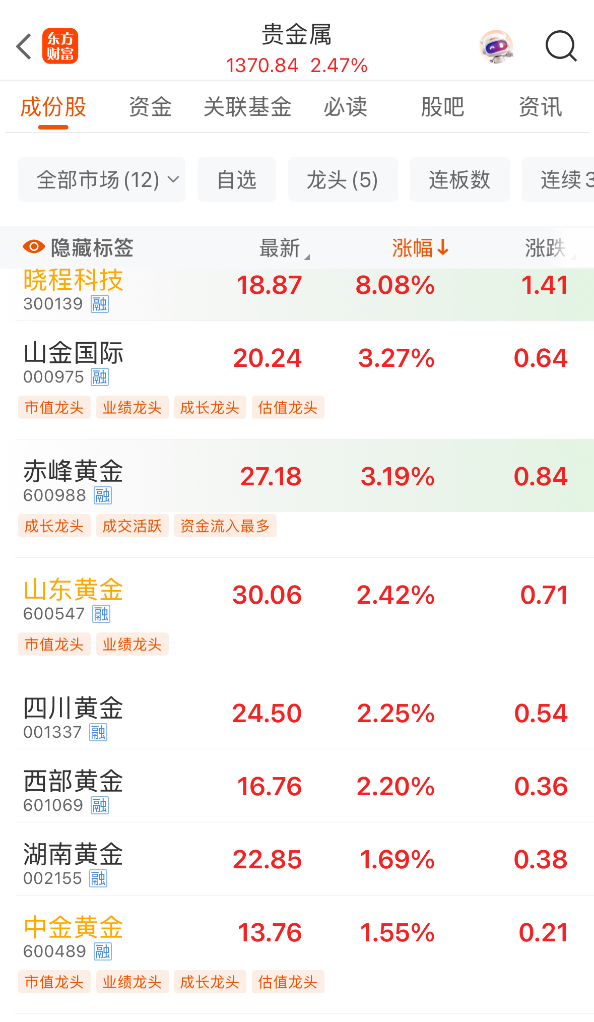 受金價(jià)回升提振,A股貴金屬板塊開盤競價(jià)高開,截至記者發(fā)稿時(shí),貴金屬板塊指數(shù)上漲2.49%,成分股中曉程科技(300139)大漲8.08%;山金國際(000975)、赤峰黃金(600988)漲超3%。