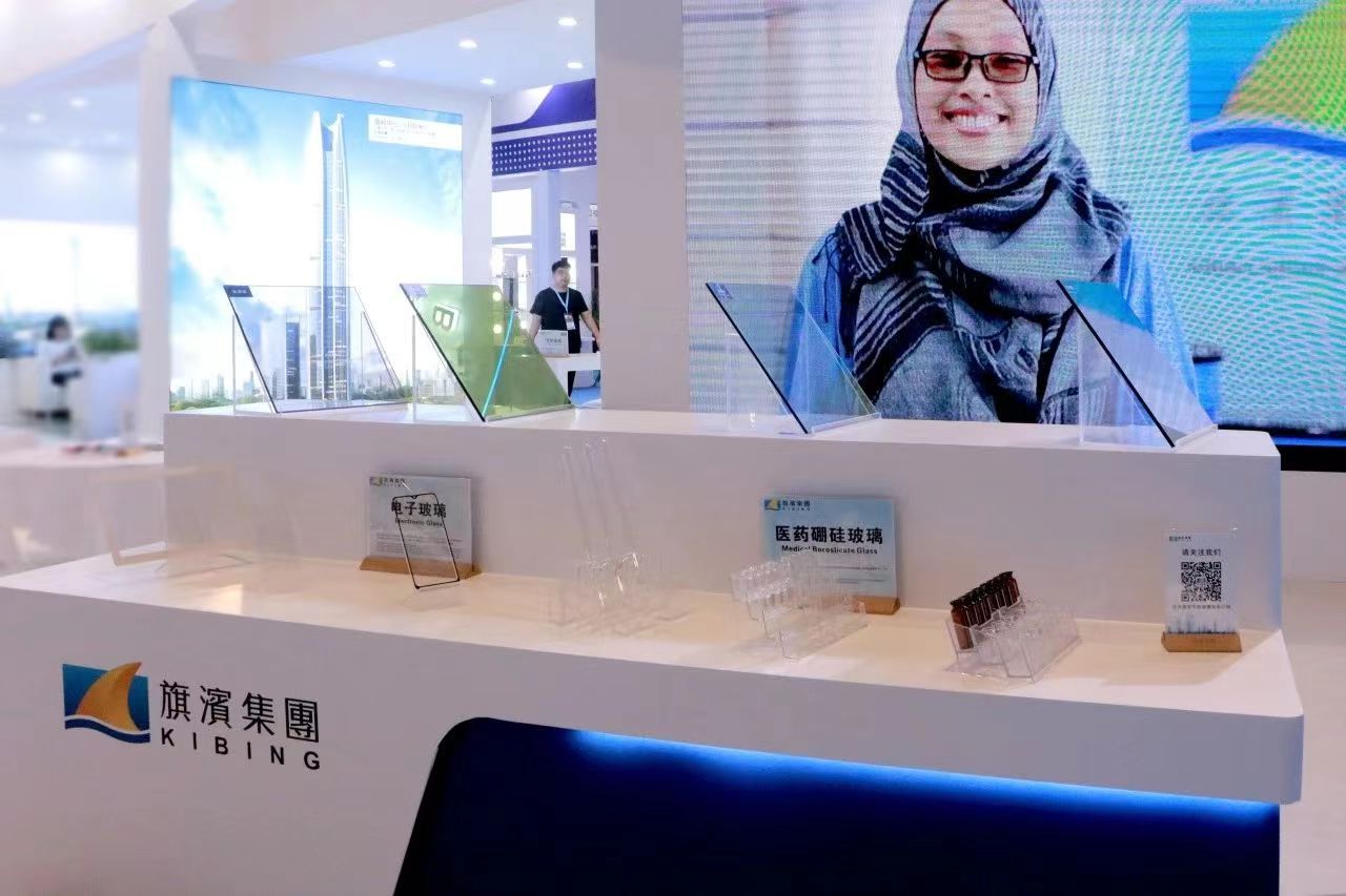 旗濱集團的玻璃新款產品展區(qū)(攝影:肖偉)