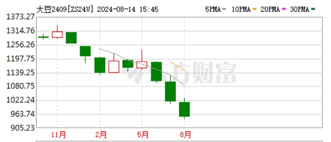 連日來,芝加哥商業(yè)交易所掛牌交易的大豆2409期貨合約(代碼:ZS24U)持續(xù)下跌,已跌破10美元/蒲式耳,目前運行在9.44美元/蒲式耳附近。