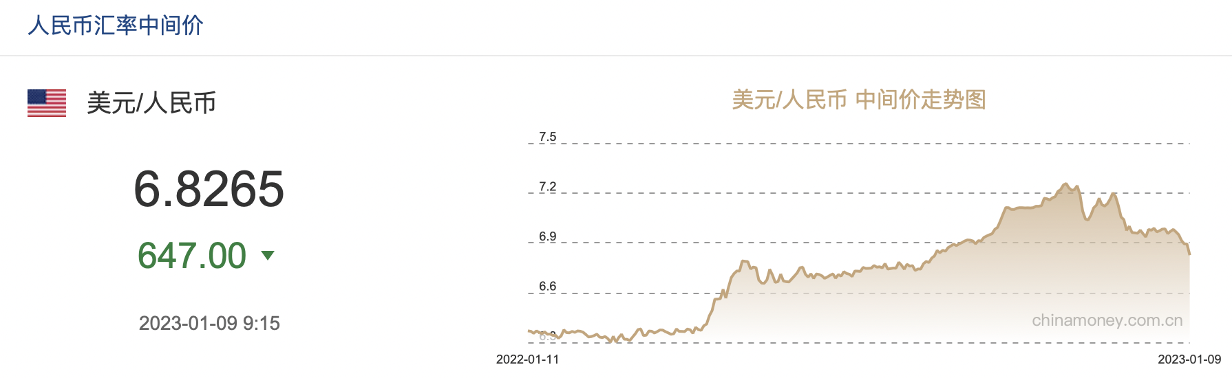 另外,1月9日,人民幣對(duì)美元匯率中間價(jià)上調(diào)647個(gè)基點(diǎn)報(bào)6.8265,創(chuàng)2022年8月23日以來(lái)新高。同時(shí),人民幣對(duì)美元匯率中間價(jià)2023年以來(lái)已連續(xù)“五連漲”。今年以來(lái),在岸及離岸人民幣對(duì)美元匯率均持續(xù)攀升。截至1月9日收盤(pán),今年以來(lái)以來(lái)在岸人民幣對(duì)美元匯率上漲2.59%;截至1月9日18時(shí)30分,離岸人民幣對(duì)美元匯率年內(nèi)上漲1.85%。