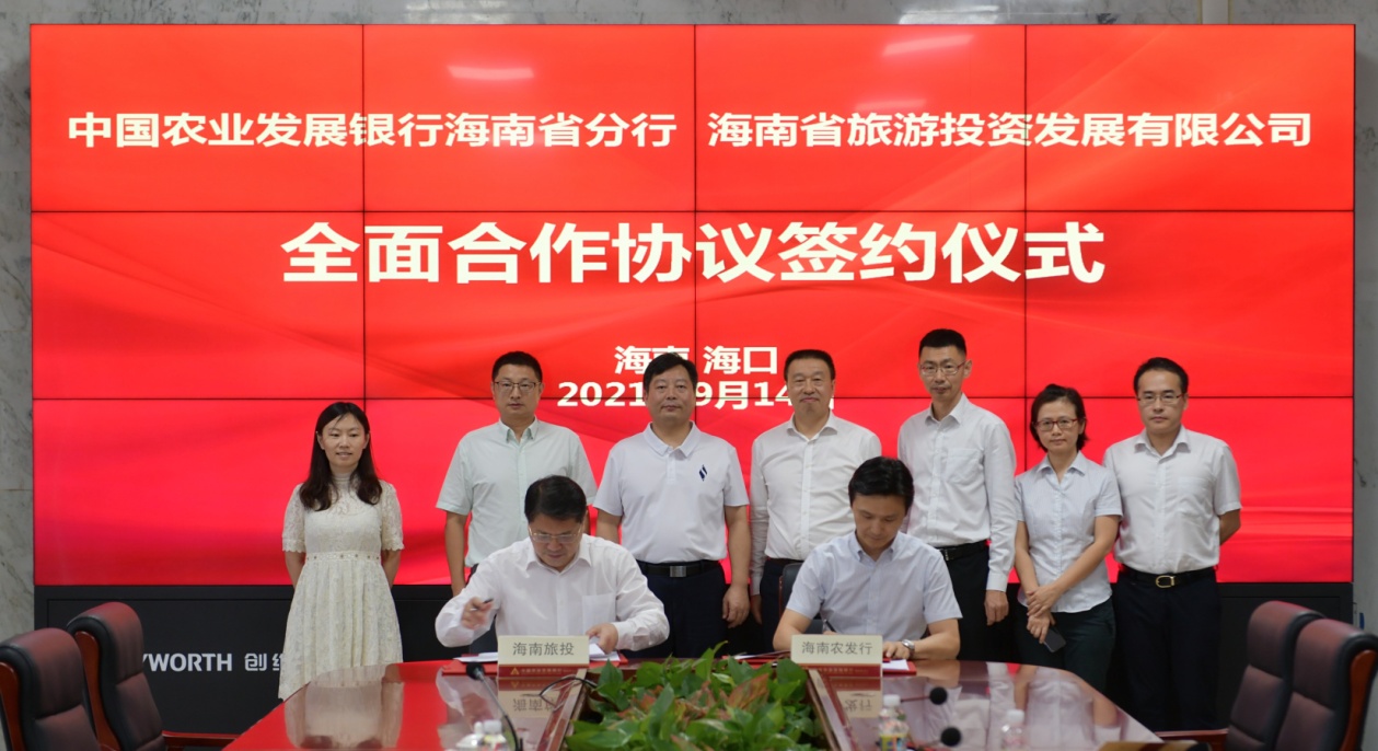 ? 農(nóng)村金融時(shí)報(bào)-農(nóng)金網(wǎng)海南訊(通訊員楊洋 黃林)9月14日,農(nóng)發(fā)行海南省分行與海南省旅游投資發(fā)展有限公司(以下簡(jiǎn)稱“海旅公司”)簽署全面合作協(xié)議,農(nóng)發(fā)行海南省分行黨委書記、行長(zhǎng)陳亮雛、海南省旅游投資發(fā)展有限公司黨委書記、董事長(zhǎng)陳鐵軍出席簽約儀式。農(nóng)發(fā)行海南省分行黨委委員、副行長(zhǎng)陳未、海南省旅游投資發(fā)展有限公司總會(huì)計(jì)師曹安輝分別代表雙方簽署協(xié)議。農(nóng)發(fā)行海南省分行資金計(jì)劃處、鄉(xiāng)村振興處、基礎(chǔ)設(shè)施處、投資處負(fù)責(zé)人,海南省旅游投資發(fā)展有限公司相關(guān)部門負(fù)責(zé)人參加了簽約儀式。