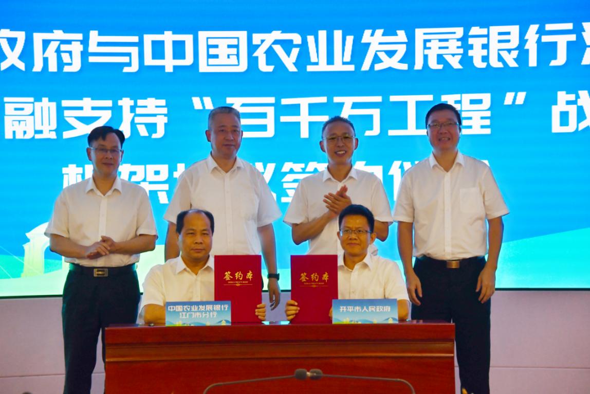 根據(jù)協(xié)議內(nèi)容,雙方將本著“相互支持、合作共贏”原則,錨定開平市全力建設(shè)省“百千萬工程”典型縣,爭(zhēng)當(dāng)廣東省縣域高質(zhì)量發(fā)展排頭兵的建設(shè)目標(biāo),加大對(duì)開平市糧食安全和重要農(nóng)產(chǎn)品穩(wěn)產(chǎn)保供、農(nóng)業(yè)產(chǎn)業(yè)現(xiàn)代化發(fā)展、生態(tài)文明和綠色發(fā)展、全面推進(jìn)鄉(xiāng)村振興等重點(diǎn)領(lǐng)域合作力度,著力解決企業(yè)發(fā)展和項(xiàng)目建設(shè)融資難題。