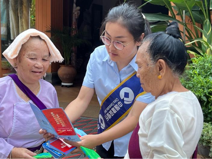 建行西雙版納州分行工作人員向民族地區(qū)村民普及金融知識建行 云南省分行供圖