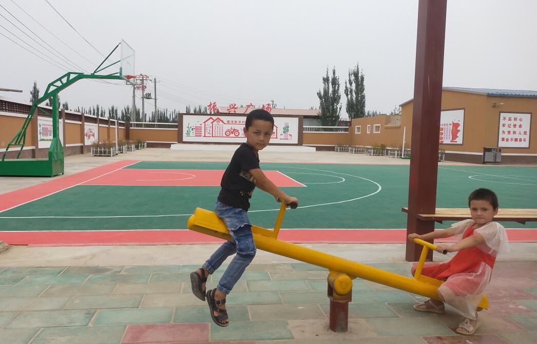 圖為村里的小朋友在新建的廣場上游玩 (徐雷 攝)