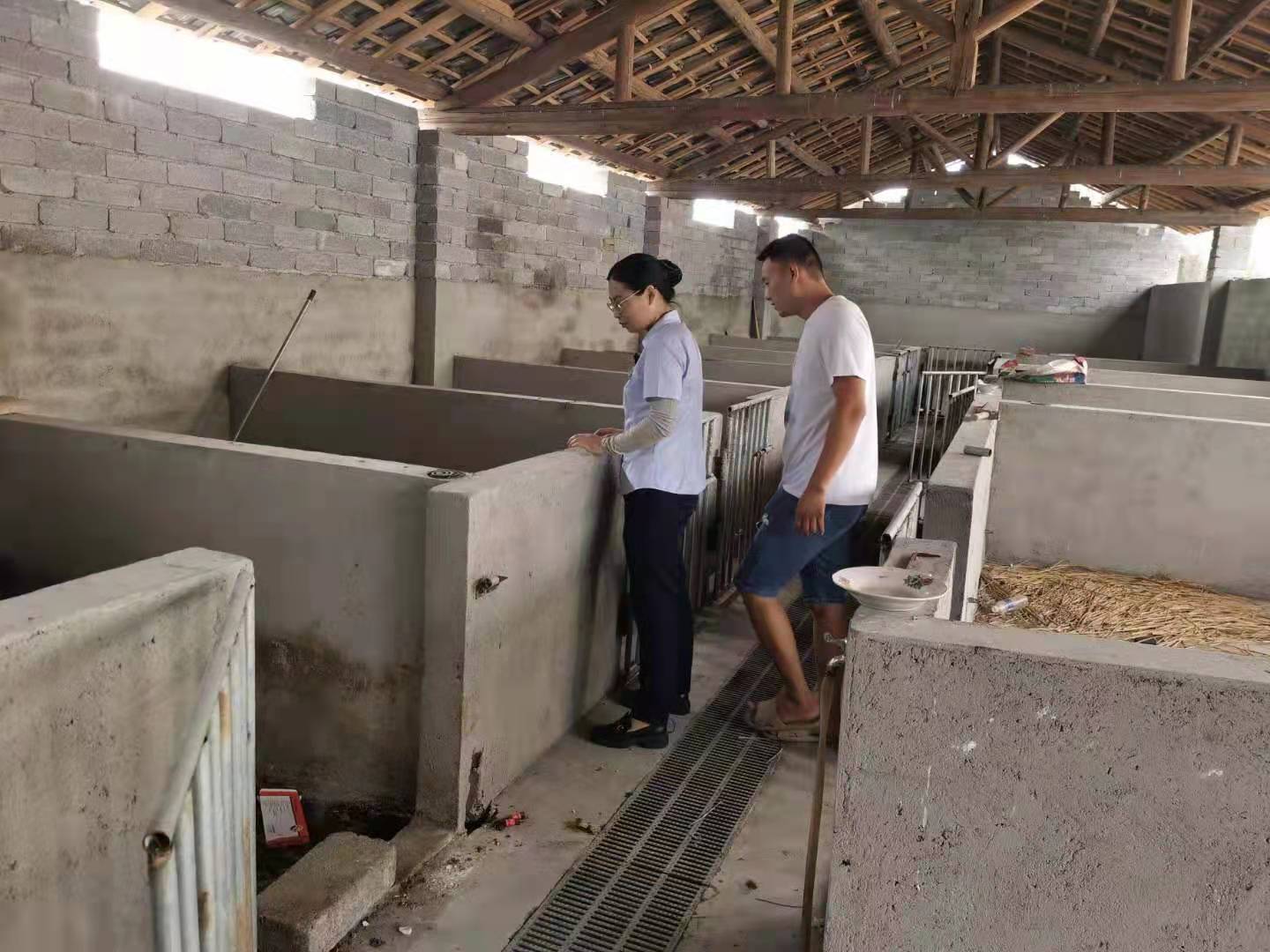 圖為休寧農(nóng)商銀行金融村官來到養(yǎng)豬戶小胡的養(yǎng)豬場了解情況