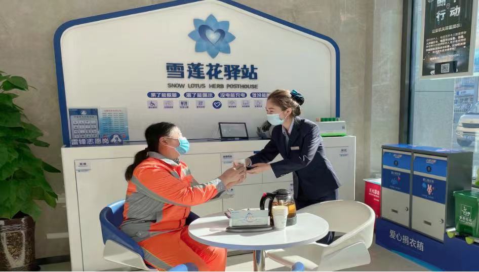天山農(nóng)商銀行按照新疆農(nóng)村信用社聯(lián)合社工會(huì)的安排,驛站配備了桌椅、飲水機(jī)、微波爐、應(yīng)急醫(yī)藥箱、充電設(shè)備、雨傘、雨衣、防疫物資等設(shè)施設(shè)備,做到累了能歇腳、渴了能喝水、沒電能充電、飯冷能加熱,力求給執(zhí)勤交警、環(huán)衛(wèi)工人、出租車司機(jī)、快遞小哥提供更為周到的服務(wù)。