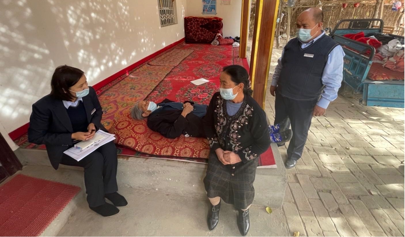 圖為皮山縣農信社工作人員上門給行動不便的老奶奶辦理業(yè)務。阿布拉江 攝