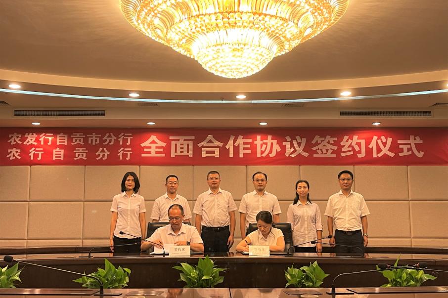 農(nóng)發(fā)行自貢市分行、農(nóng)行自貢分行黨委全體成員出席并見證簽約。