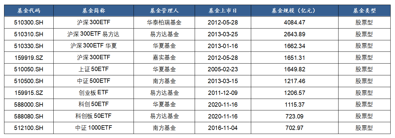 2.寬基ETF規(guī)模較大,龍頭產(chǎn)品涌現(xiàn)