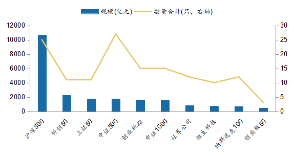 圖2:ETF產(chǎn)品規(guī)模統(tǒng)計(jì)(億元)