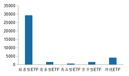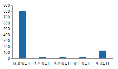 圖5:境內(nèi)權(quán)益類ETF產(chǎn)品基于資產(chǎn)類型的分布統(tǒng)計(jì)